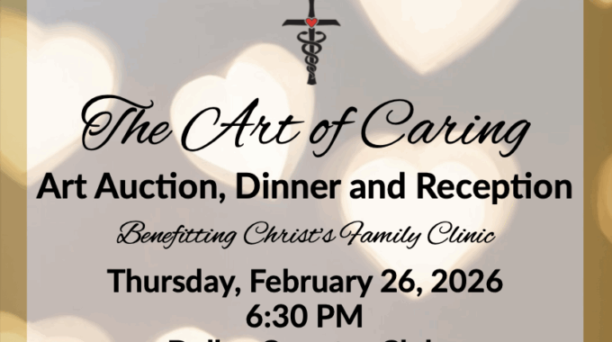 Christ’s Family Clinic is thrilled to announce the upcoming 2026 Art of Caring for Others Art Auction, Dinner & Reception—an inspiring evening celebrating art, community, and compassion in support of our mission to provide high-quality healthcare to uninsured adults in North Texas.